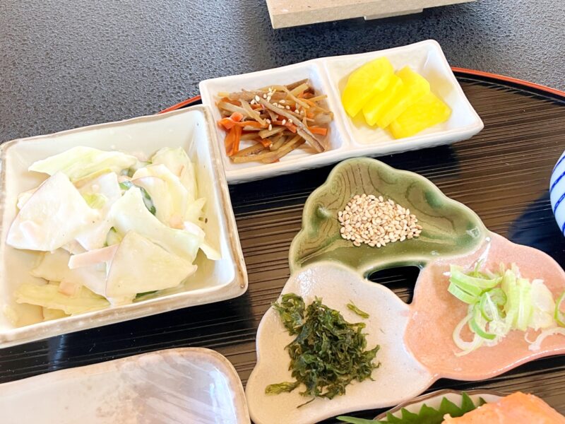 メニューはオンラインになっていました。ランチは、唐揚げやサバの定食もありました。今回は、インスタにものっていた、「枝垂れセット(おにぎりセット)」を注文。