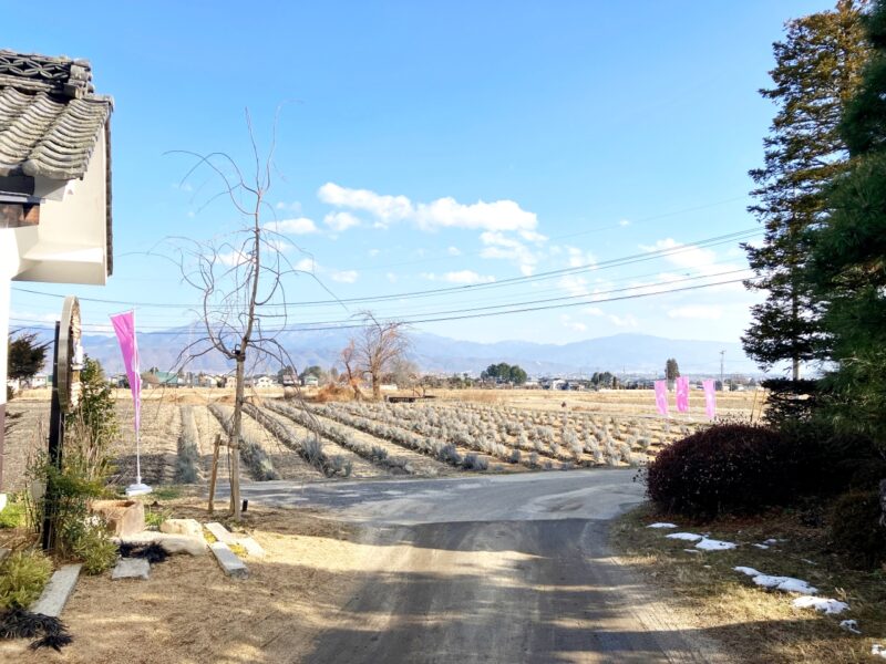 目の前にはのどかに広がる安曇野の風景。空が広く心地よいのも昔ながらの農家さんらしいですよね。