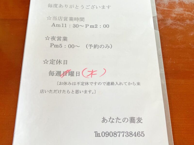 「あなたの蕎麦」は、豊科から国営アルプスあづみの公園へ向かう途中にあるおそば屋さん。