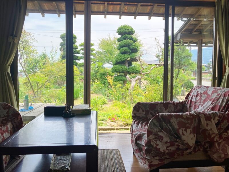 北アルプスと日本庭園眺めながらのおそばもいいですね。