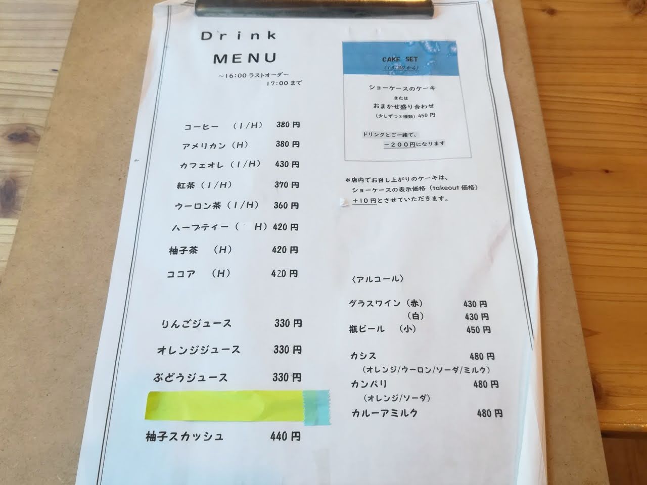 カフェタイムは、ドリンクとケーキを注文できます。