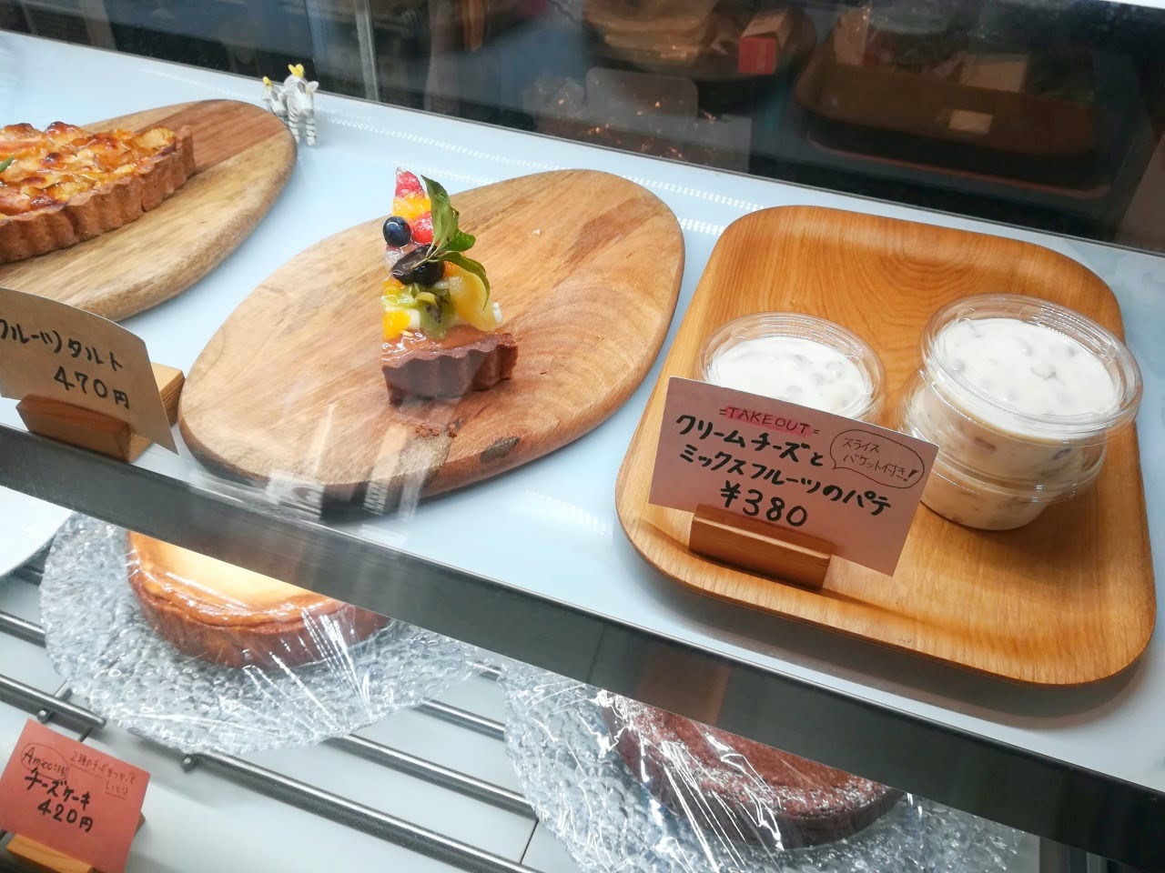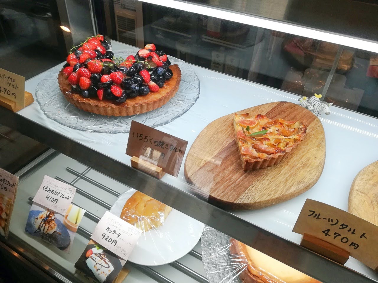 どうしようかなとショーケースを覗くと、美味しそうなタルトたちが並んでいます!