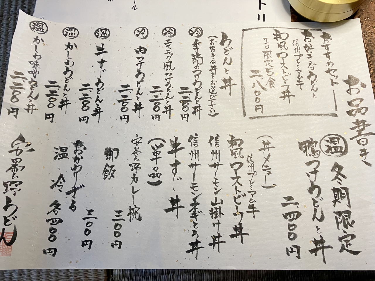 「安曇野うどん」のメニュー