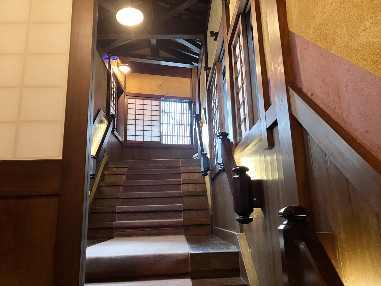 渡り廊下を案内されて進むと、ダイニングとなるエリアに到着します。ちょうど上の建物から降りてきた感じですね。