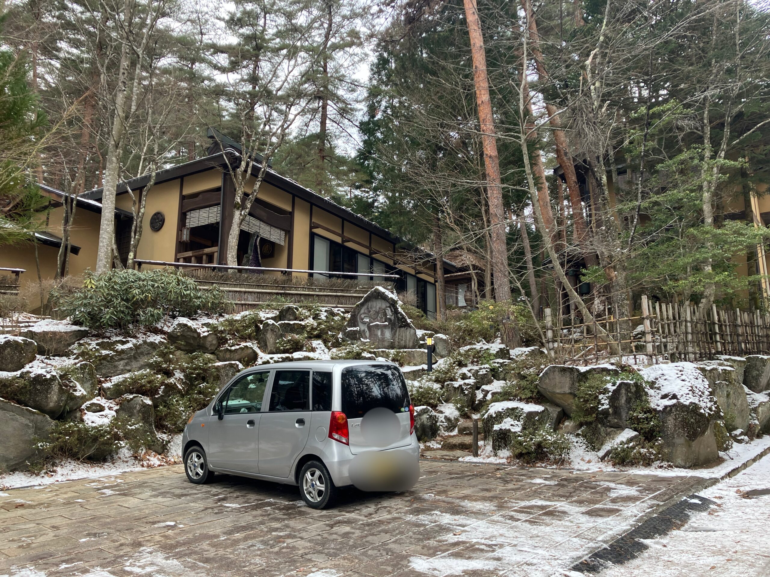 「安曇野うどん」は、穂高の別荘地にあるお店です。地図を見ながら上がっていくと、駐車場があるので、停めてから、中庭を通って上に上がっていきましょう。通りが凍ってなければ、道路を上がっていっても良さそうです。