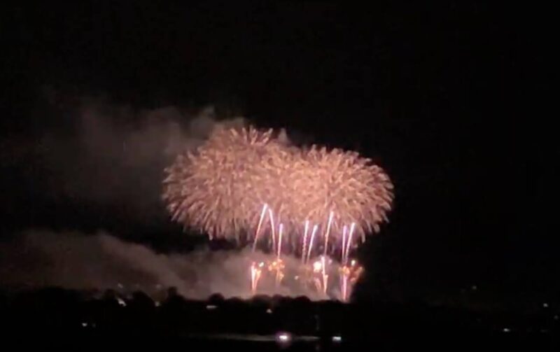 毎年行われる「安曇野花火大会」。会場には多くの人が詰めかけます。近くの道路で立ち止まっって見る方も多いですよ。