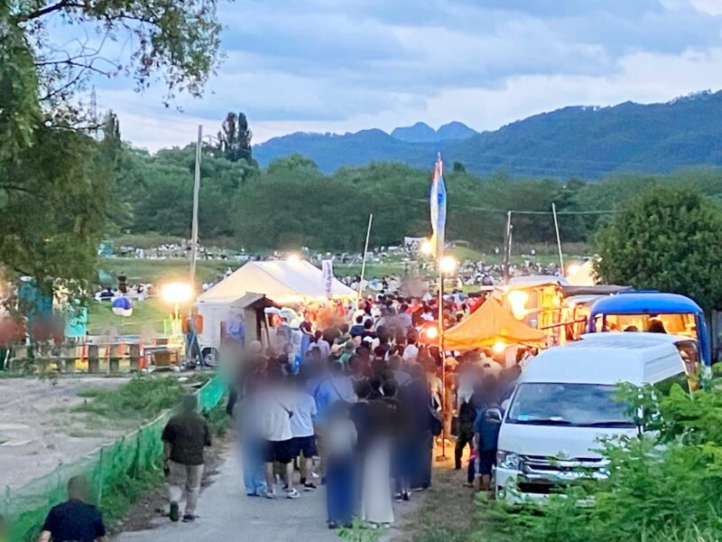 遮るものがないので、どこからでも見るとことができるのも安曇野花火大会の特徴。会場には浴衣を着て楽しむ方もたくさんいました。