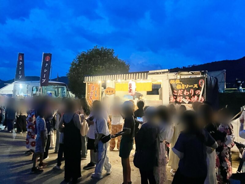 キッチンカーが並び、ビールや食事をゲットすることができます。