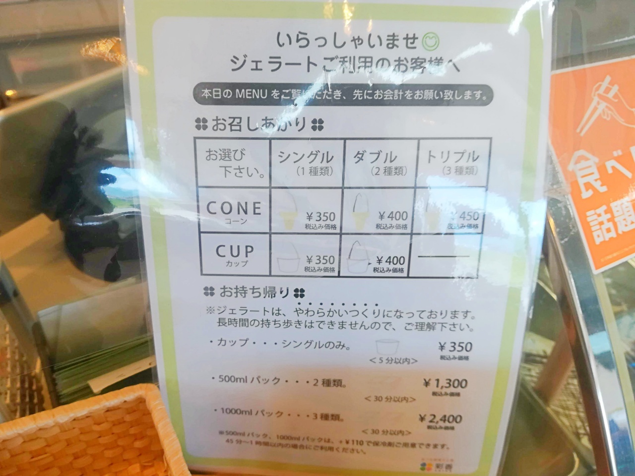 前の人たちが美味しそうなジェラートを購入していましたよ。