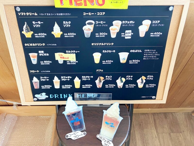 ソフトクリームやパフェ、ドリンクを注文することができます。