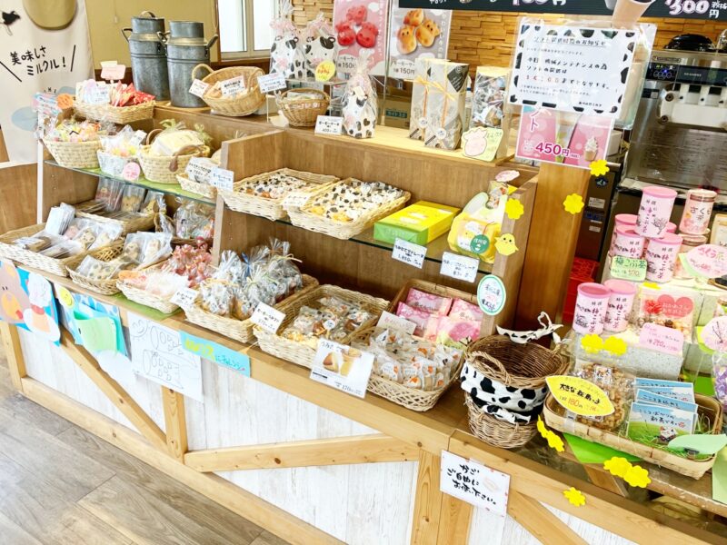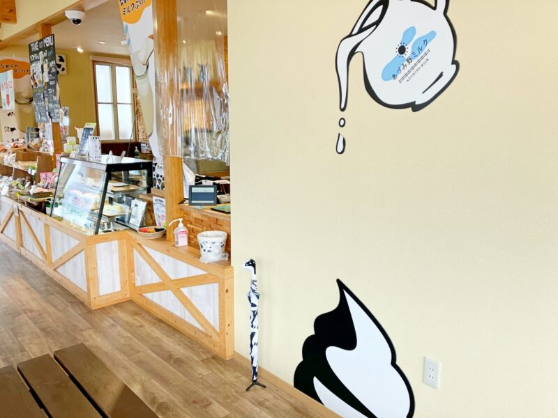 「あづみ野ミルク」の店内はには牛さんの模様がちらほら。