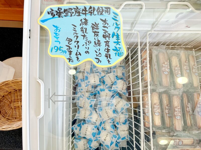 安曇野の牛乳を使ったミルク生大福も「あづみ野ミルク」のおすすめ商品。