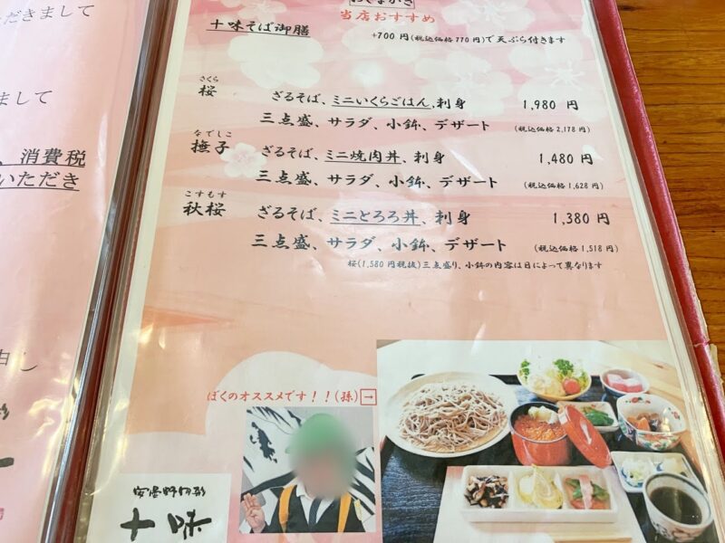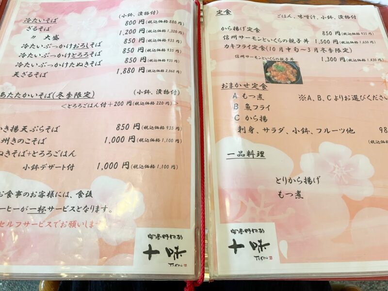 「蕎麦処 安曇野旬彩 十味」のメニュー
