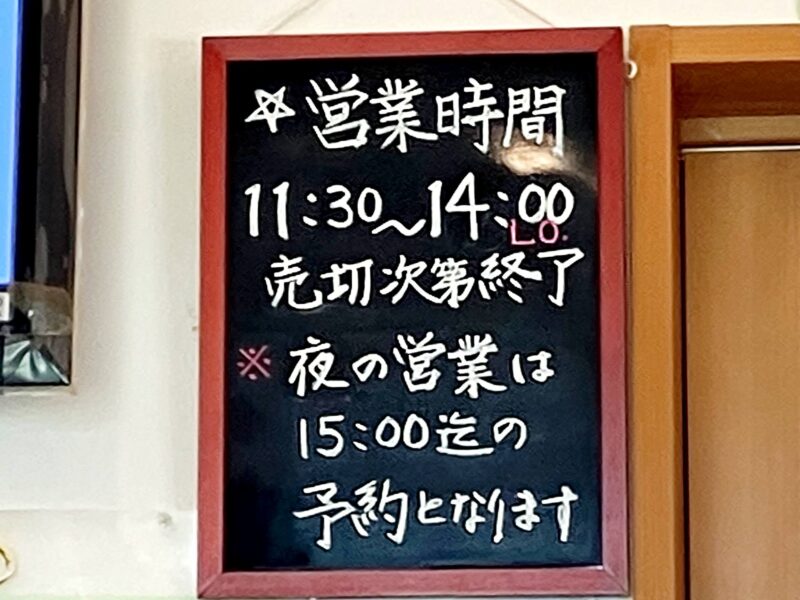 営業時間は11:30から14:00まで。売り切れ次第終了です。