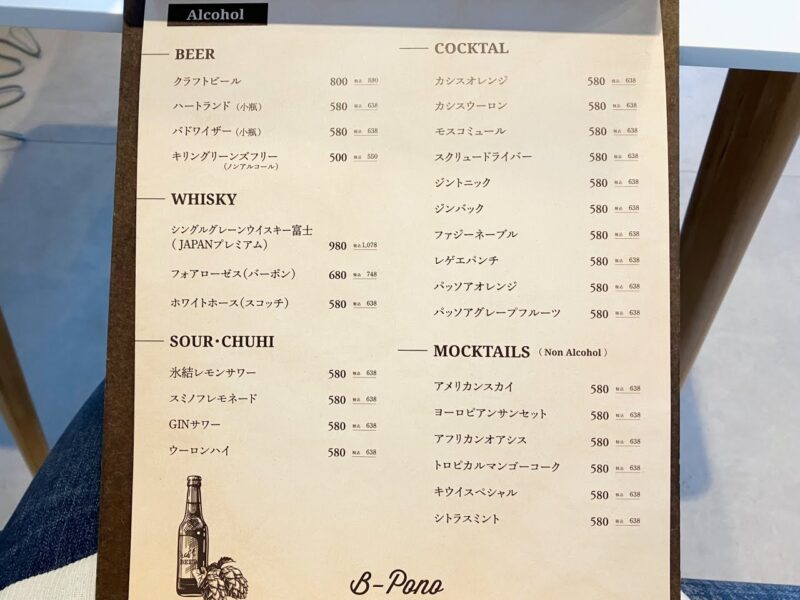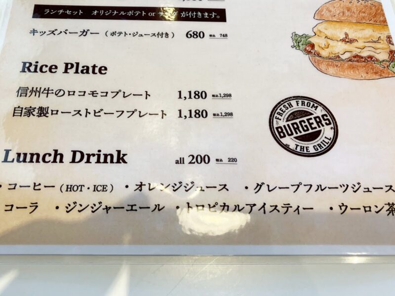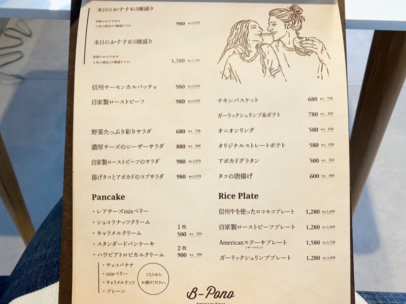 「アメリカンダイナー B-Pono」には、ランチとグランドメニューとあるので、両方紹介します。