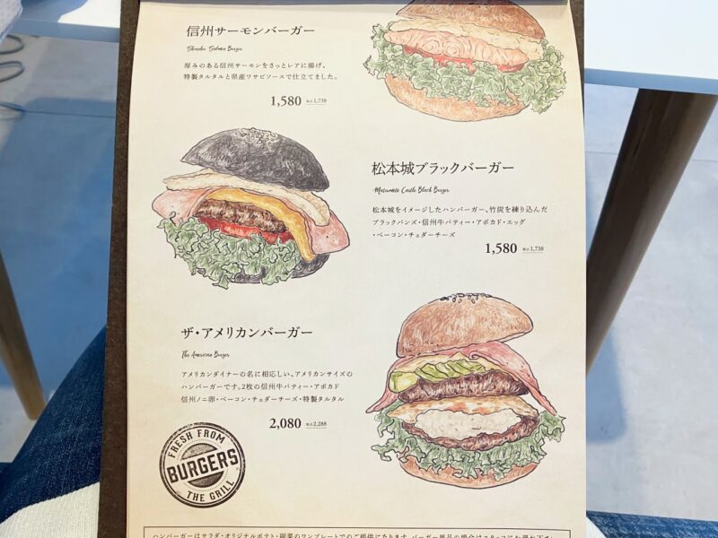 信州サーモンや松本城をイメージした松本城ブラックバーガーなども見逃せません。