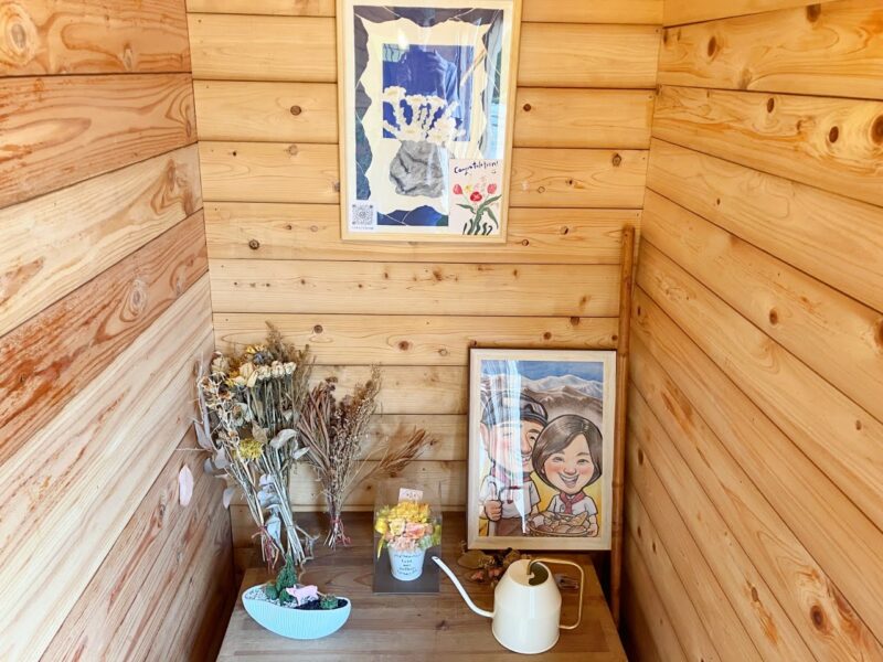 反対側にも、ドライフラワーと似顔絵と飾ってあります。