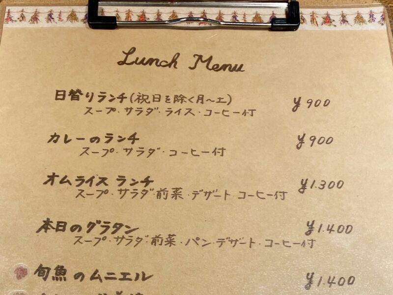 日替わりランチは平日限定。