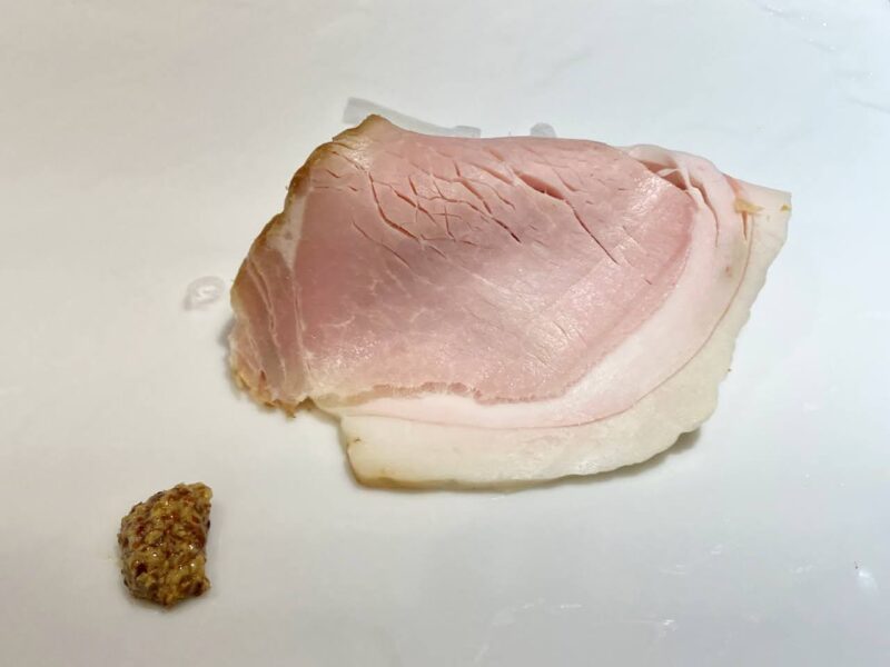玉ねぎのスライスとマスタードと一緒にいただきます。