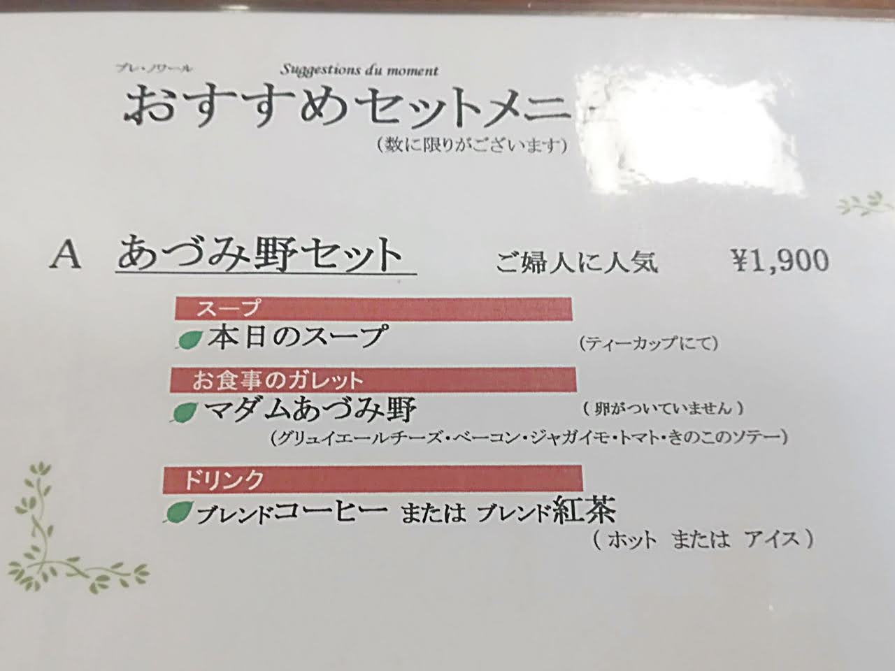 あづみ野セットは、スープとガレットをいただけます。