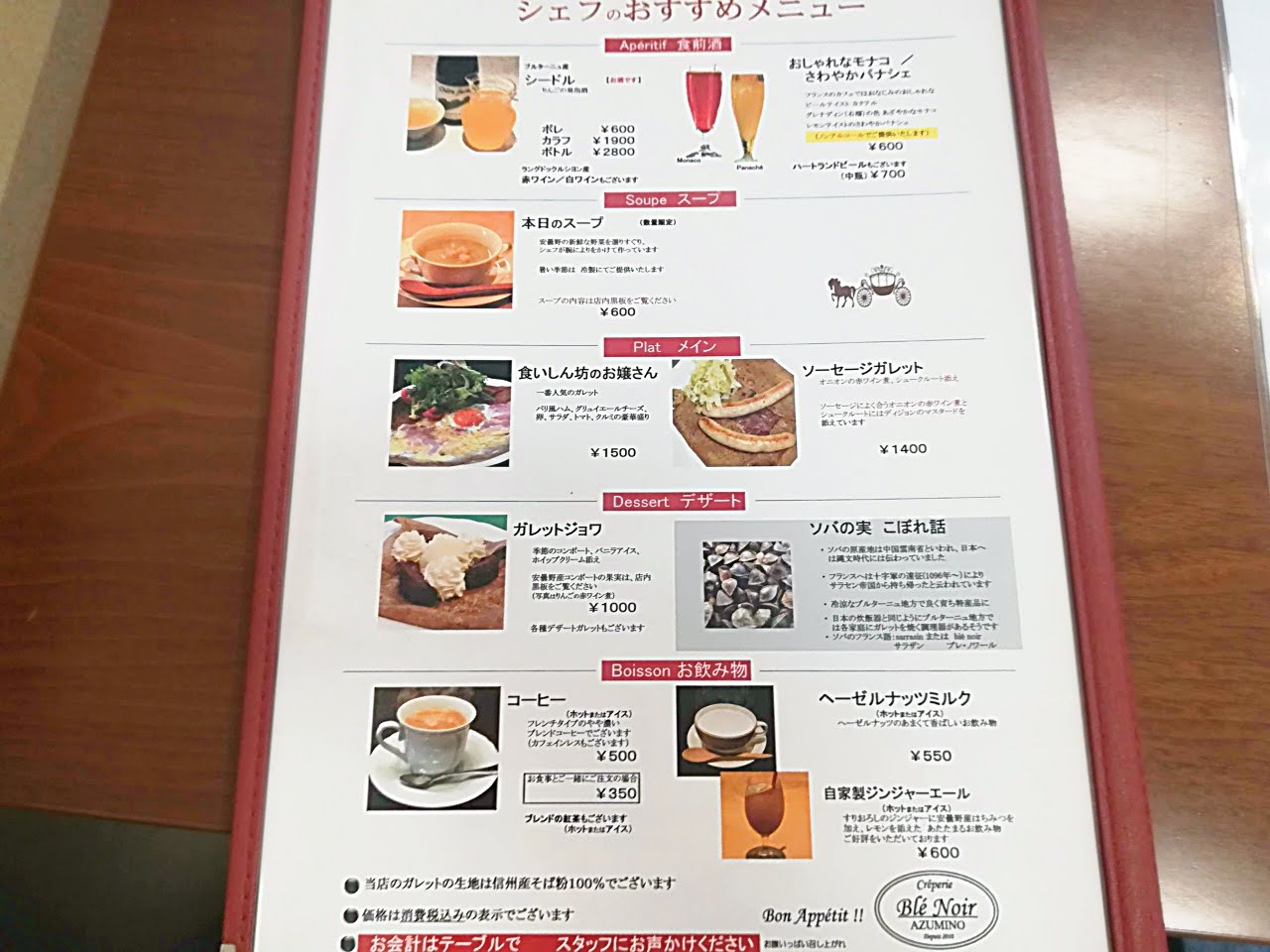 「Blé Noir(ブレ・ノワール)」のメニュー