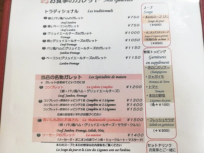 もちろん他にも、単品でいろんなガレットメニューがあります。