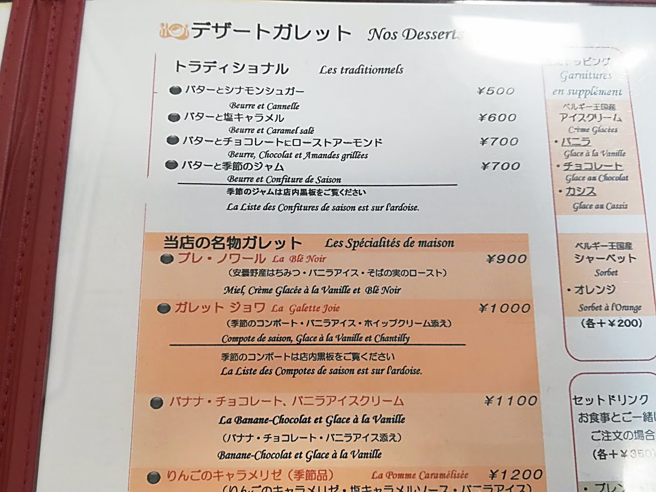デザートガレットは4種類から選べるのも嬉しいポイントですね!