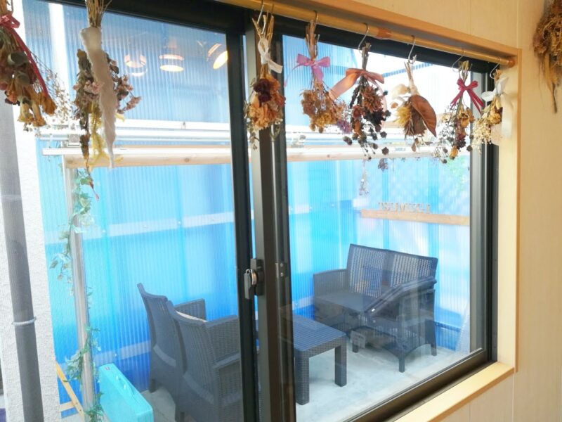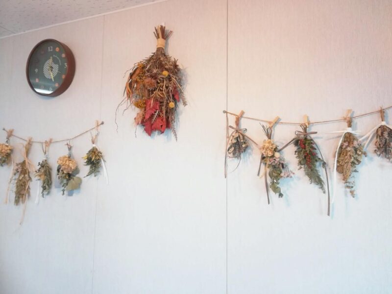 店内にはドライフラワーも飾られていて、ほっとできる空間が広がっています。