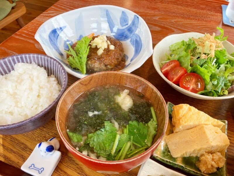 本日の気まぐれプレートのメインはお豆腐入りハンバーグ・りんごソースです。