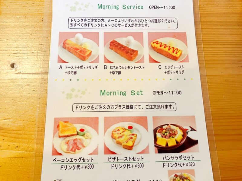 ドリンクを注文すれば、モーニングサービスは選べると書いてありますね。