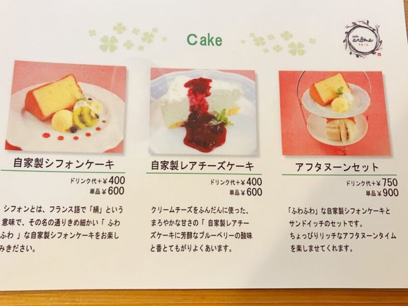 カフェタイムに伺ったので、ケーキメニューもチェック。