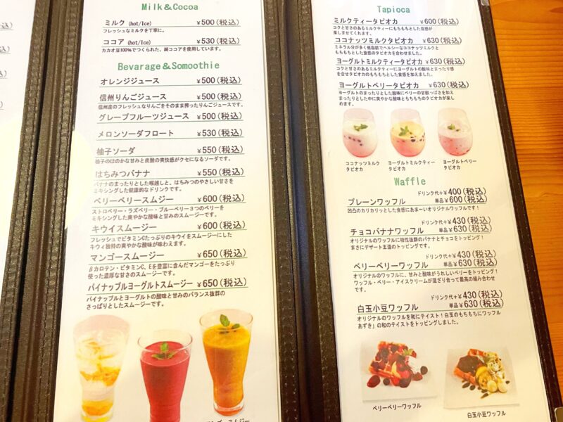 ワッフルもありますね。白玉小豆ワッフルとかおいしそうだな〜。
