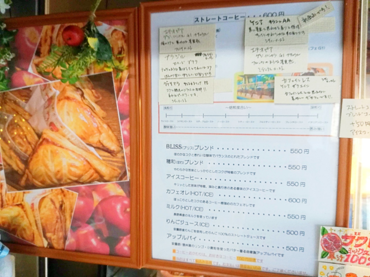 「CAFEBUS BLISS&蔵ギャラリー穂和」のコーヒーとアップルパイ