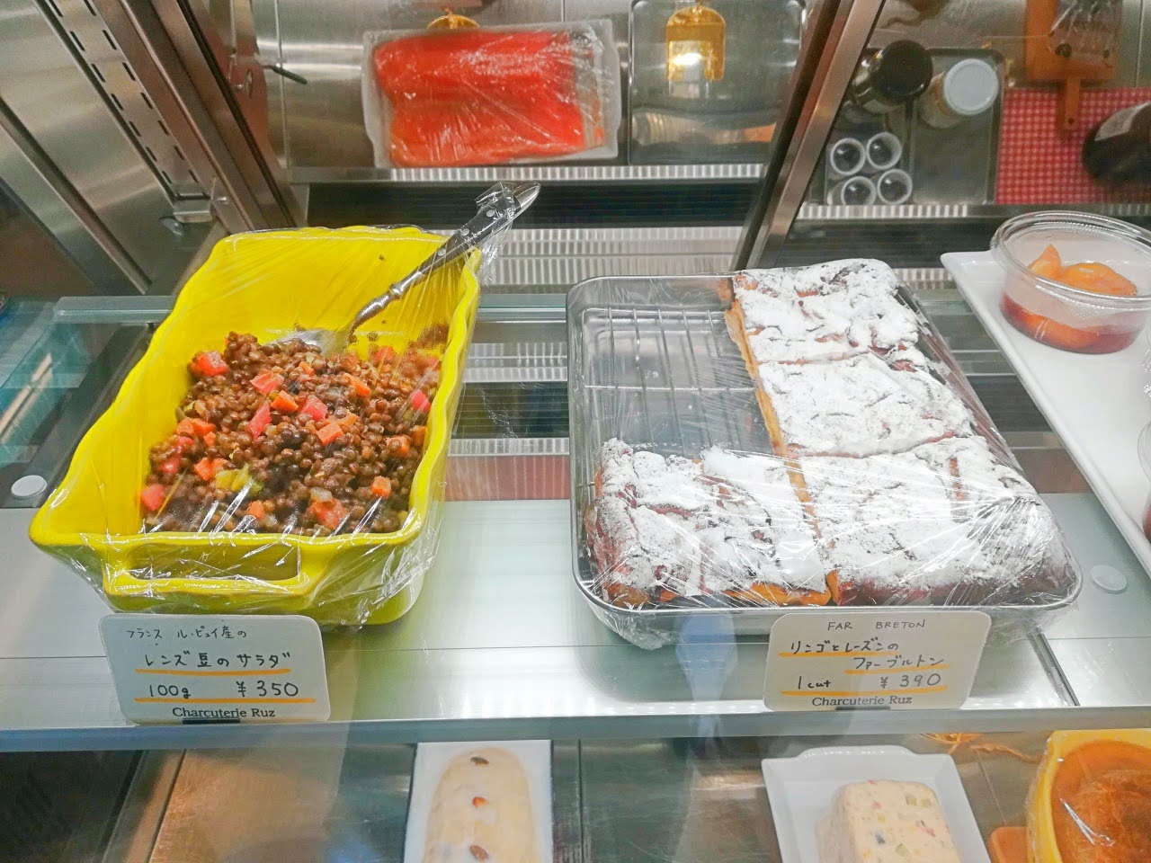 上の段には、レンズ豆のサラダやファーブルトンが並びます。