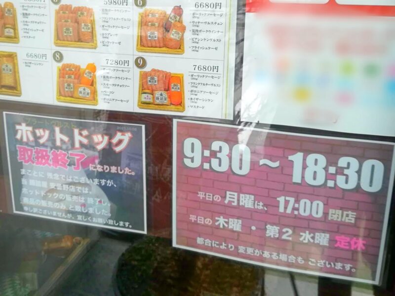 現在は、ソーセージやハムなどを販売しているのみになります。