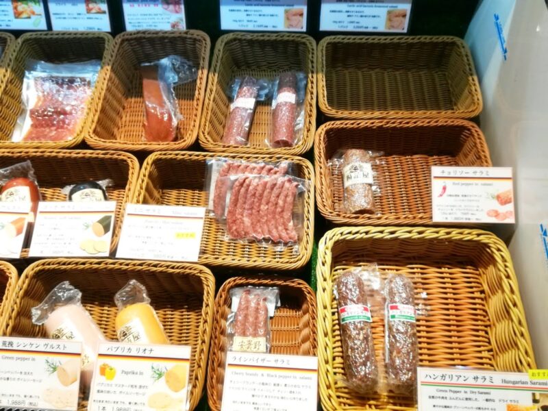 こちらにはサラミなどが並んでいます。加熱後に乾燥させたハンガリアンサラミは、本場の味にも負けないサラミだそう。