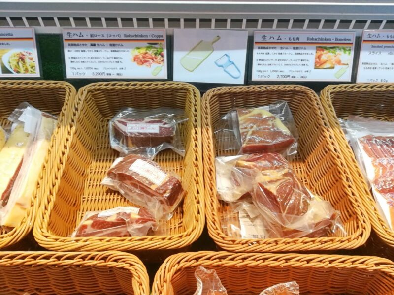 横には生ハムやソーセージ、ハムなどが並んでいます。