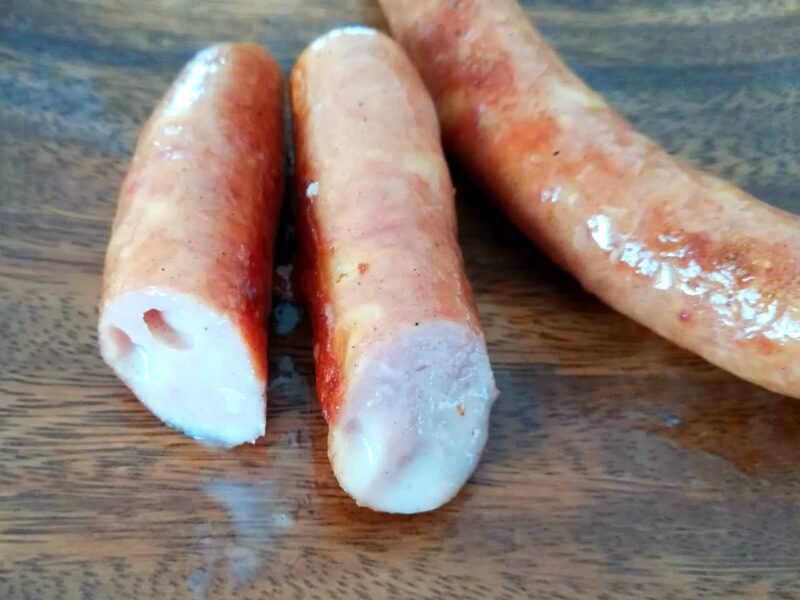 ボロニアソーセージはイタリア発祥の豚ももを使った太いソーセージ。