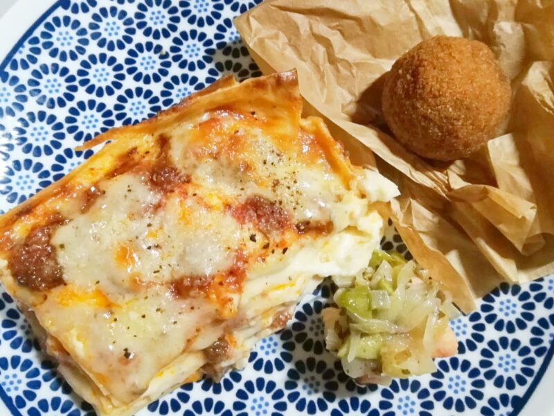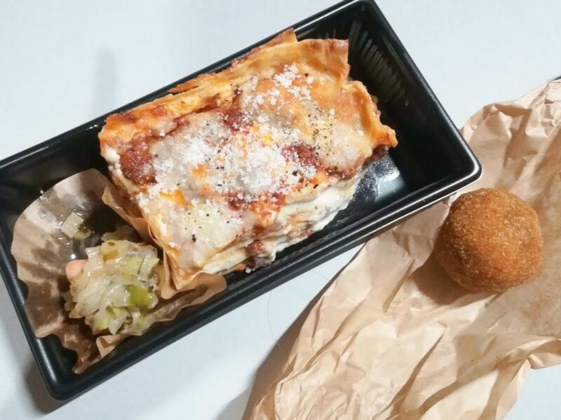 今回テイクアウトしたのは、ラザニア・アランチーニ・サーモンのシラクーザ風です。
