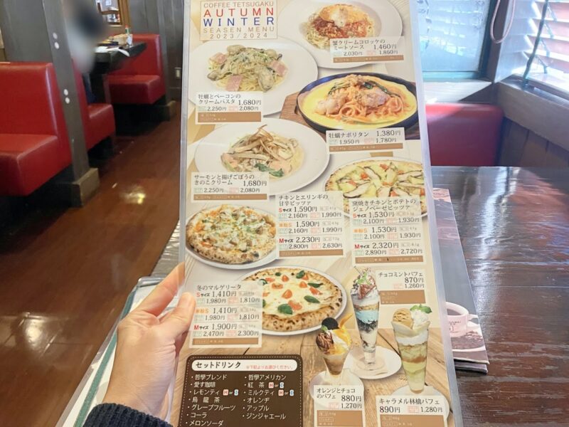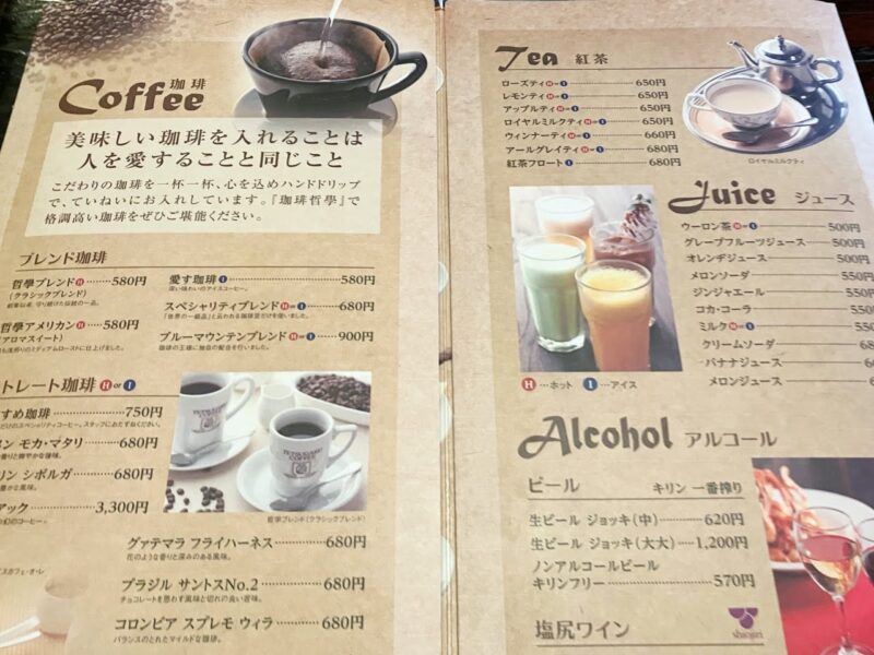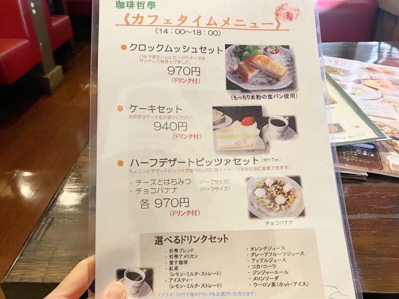 「珈琲哲學 あづみ野店」のカフェメニューです。
