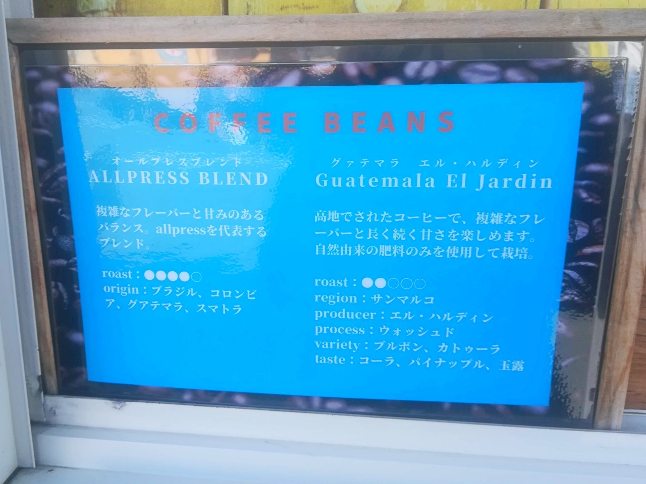 コーヒー豆は、ALLPRESS ESPRESSOというコーヒー豆ロースターのものを使用。東京や横浜にいた時に他店で何度か飲んだことがあります。どれも美味しいコーヒーでしたね。