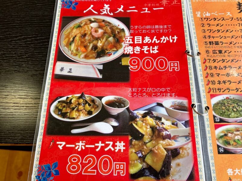 「中華料理 華正」は、地元の人に人気の中華料理店です。