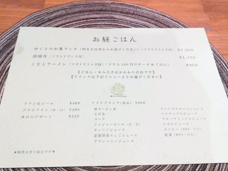 「安曇野 Dining ゆくり」はランチタイムとディナータイムに営業されています。