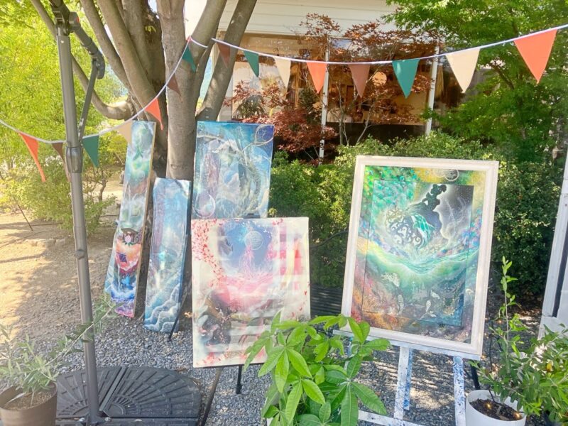 ディンプルアートは、自動車のフロントガラスの廃材をアップサイクルした絵具だそうです。