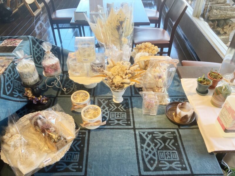 入り口のドアを開けると、すぐにドライフラワーやキャンドルが並んでいました。