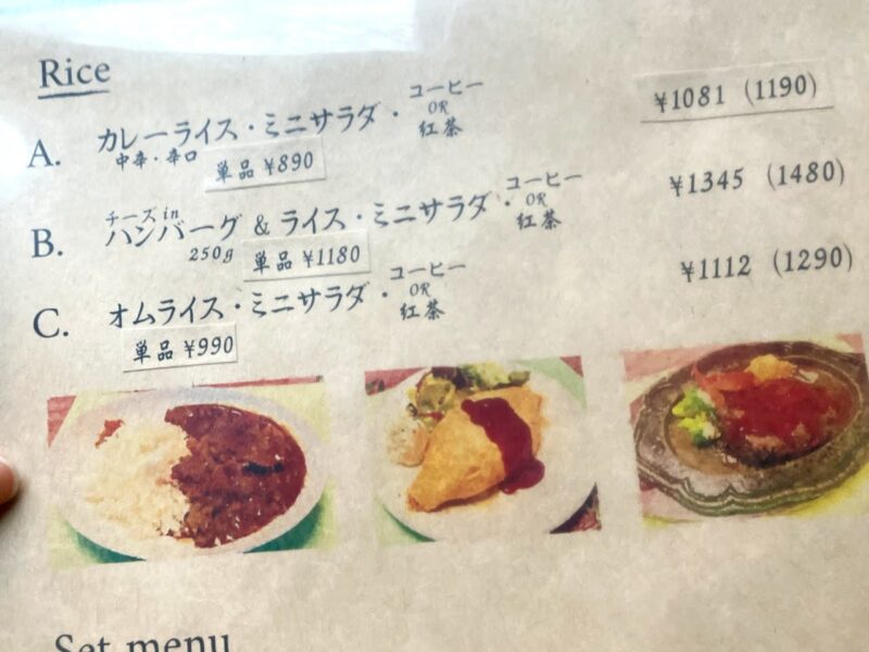 ライス系メニューには、カレーとハンバーグ、オムライス。