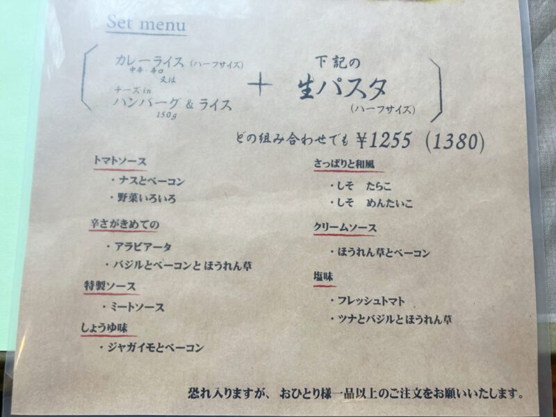 一押しは、カレー・ハンバーグと生パスタのセットです。