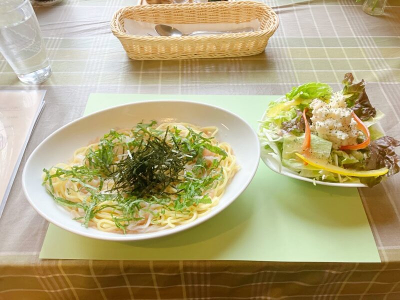 注文したのは、ハーフサイズの生パスタとミニサラダです。