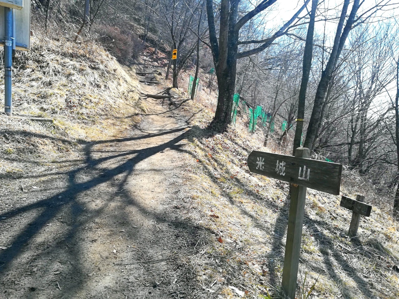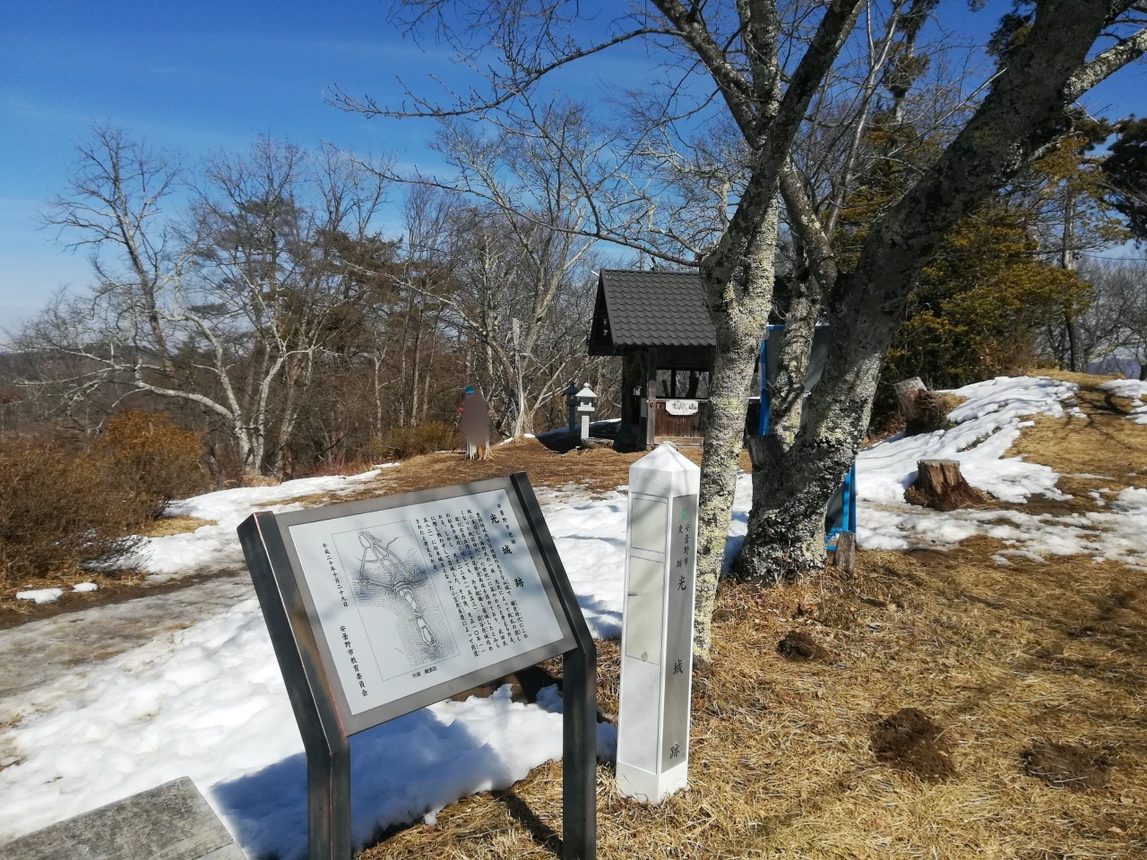 さらにおくに進むと、光城跡の看板や光城址(古峯神社)が見えてきます。こちら側に来るとベンチなどはないので、のんびりするなら先ほどのベンチあたりがおすすめ。