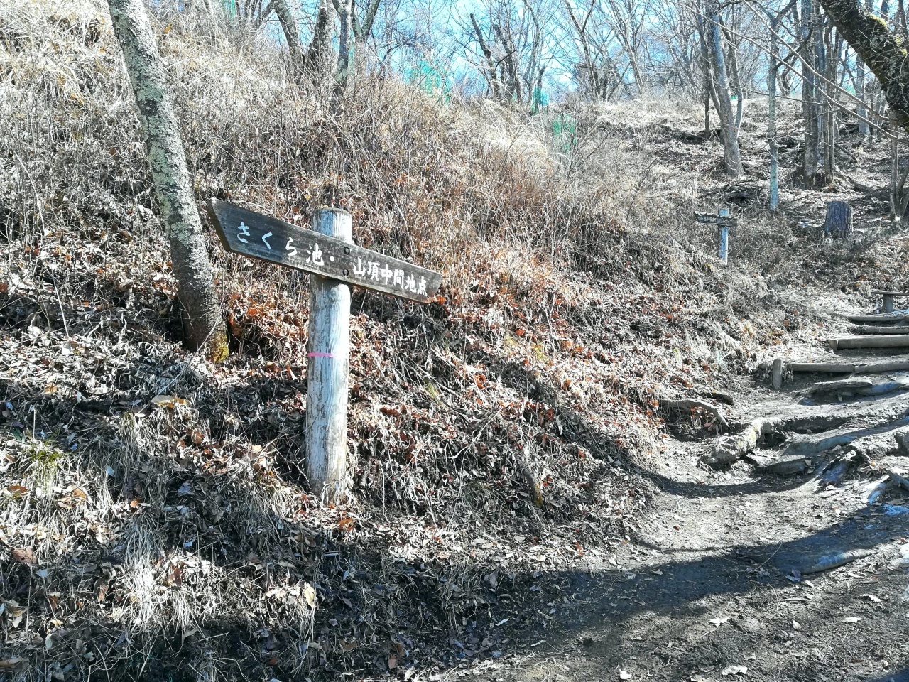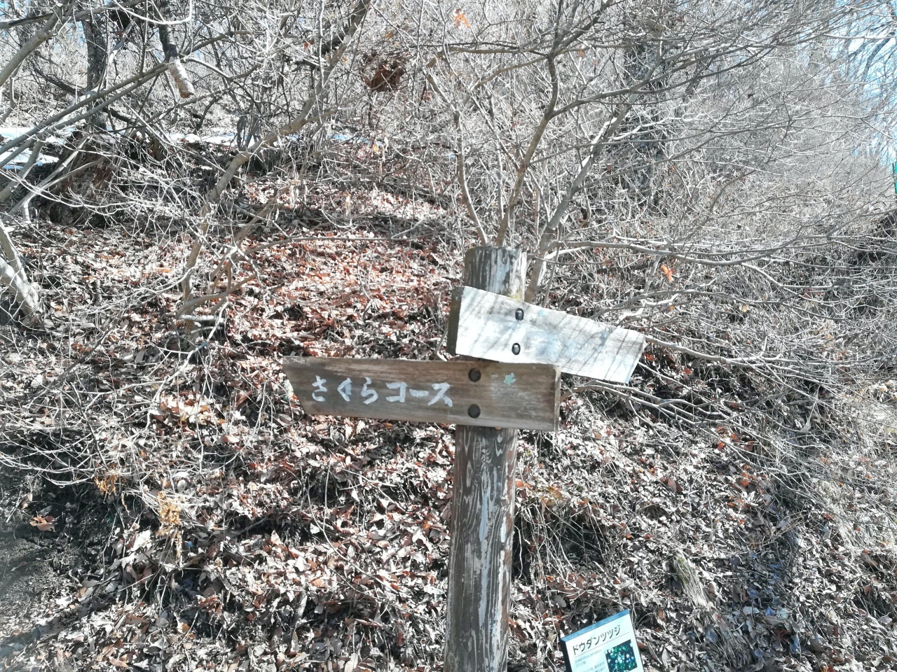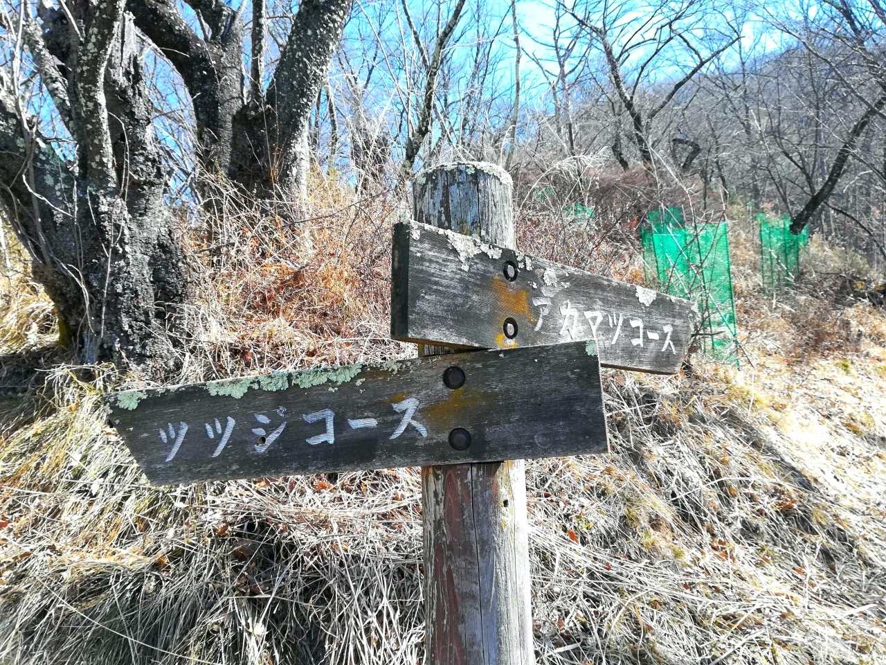 上に登っていくと、アカマツコースとツツジコースに別れます。どちらから登っても同じ山頂に到着。